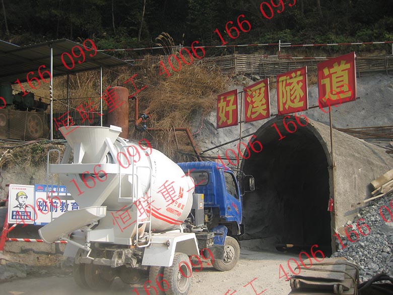 浙江麗水好溪隧道攪拌車施工現(xiàn)場