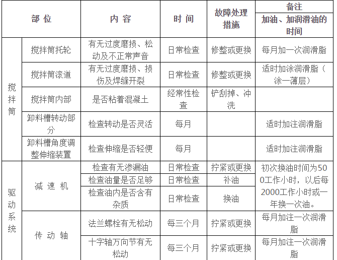一張讓混凝土攪拌車司機掌握攪拌車整體保養(yǎng)的表格