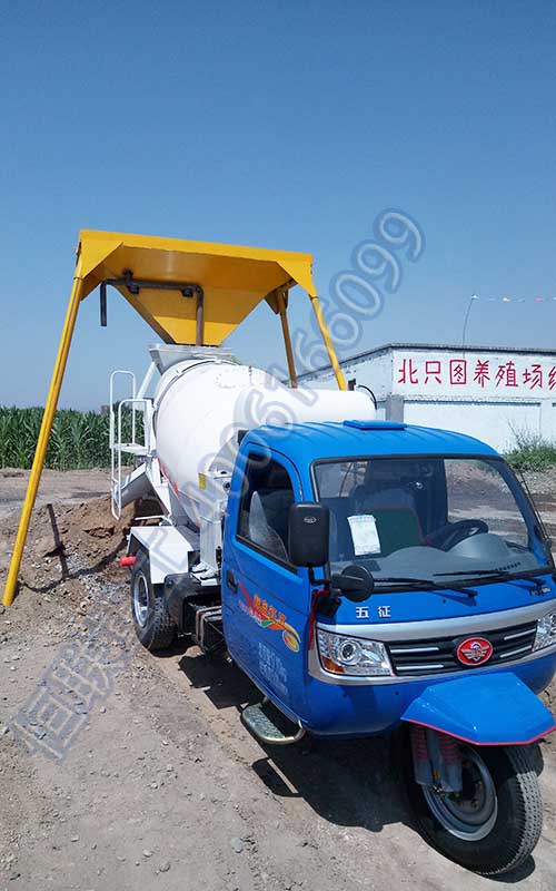 三輪攪拌車攪拌干料,鏟車上料